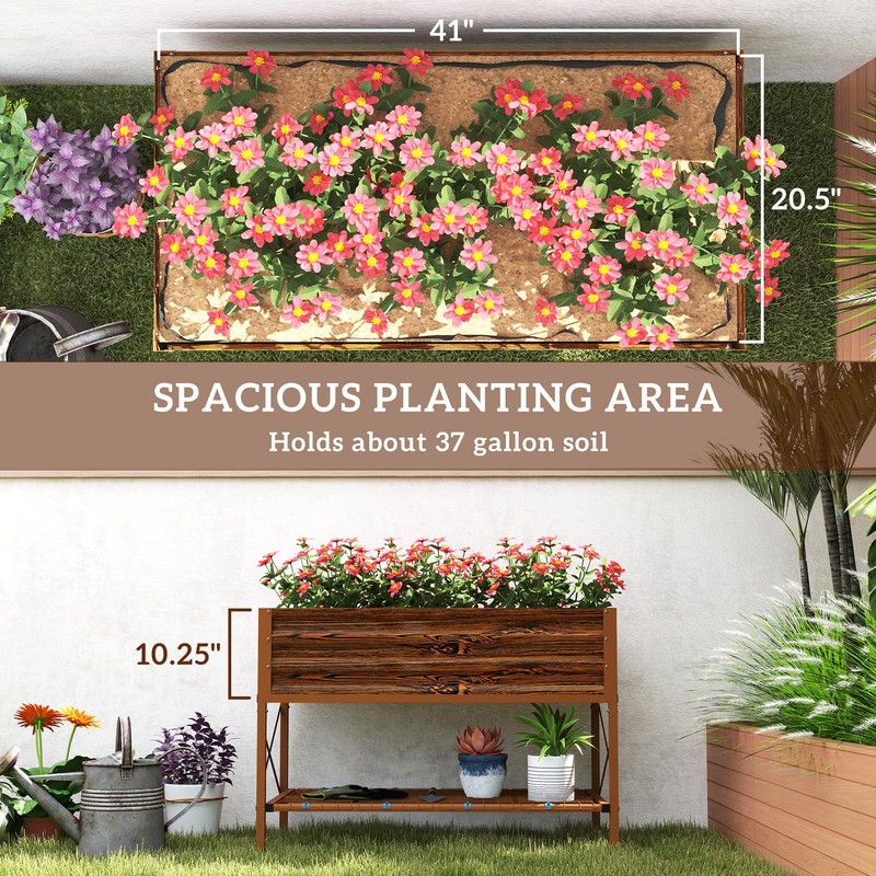 - Raised Planter with Elevated Shelf Info: Overall Dimensions: 41.75" L x 21.25" W x 30" H. Weight Capacity: 440 lbs. (Planter Box), 22 lbs. (Shelf).