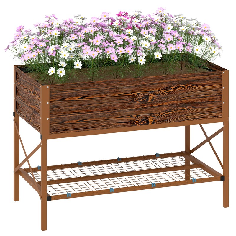 With an Outsunny raised garden planter, having a garden is never outside your reach. Excellent for small apartment, our planter box on legs helps you grow vegetables, flowers and herbs on asphalt. By reducing bending and stooping, a raised box means garden work won't be back-breaking work. This planter lifts vegetables up and away from weeds and wild animals to keep them safe and protected. Featuring a shelf that keeps supplies nearby, an Outsunny herb planter helps you raise your green thumb.