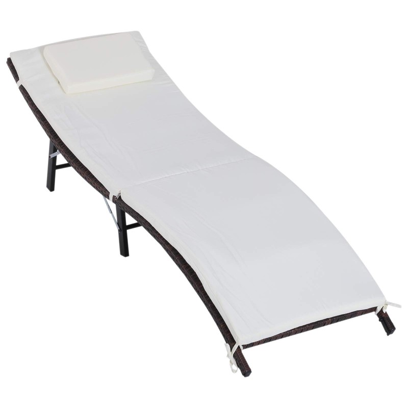 Outsunny Set of 2 Patio PE Rattan Chaise Lounge Set, 3 Pieces Outdoor Folding Wicker Ledge Loungers Chair with Folding Table, Pillow