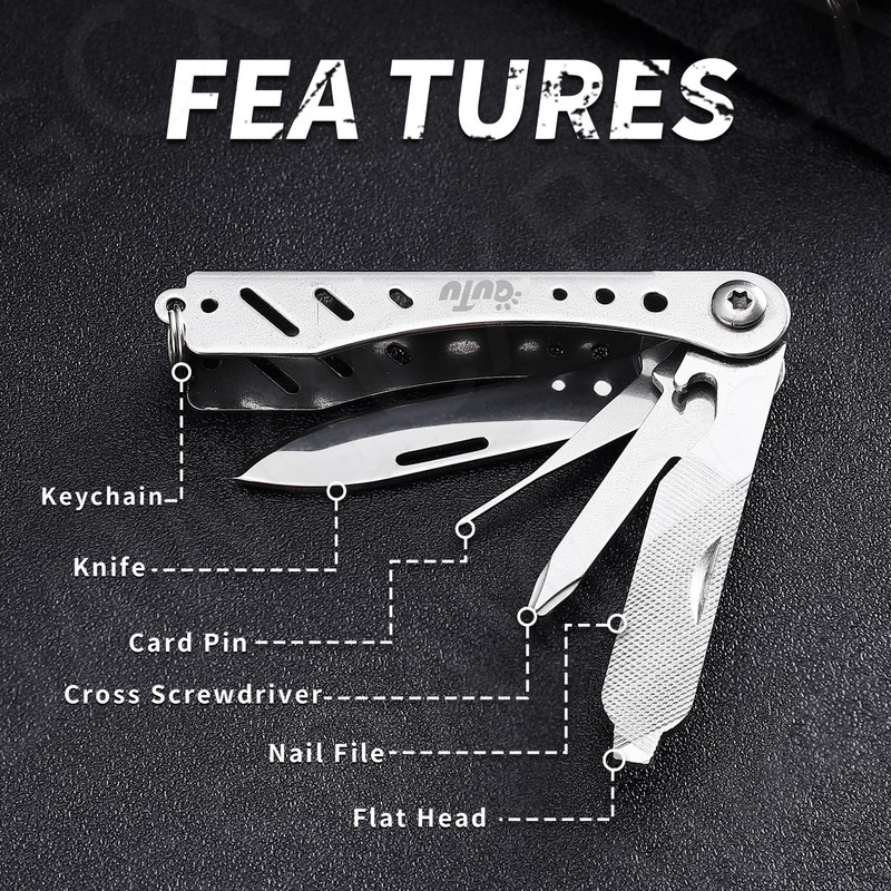 - Versatile Tool Selection – Includes a knife, card pin (SIM ejector), cross screwdriver, nail file, and flat head screwdriver for daily use.