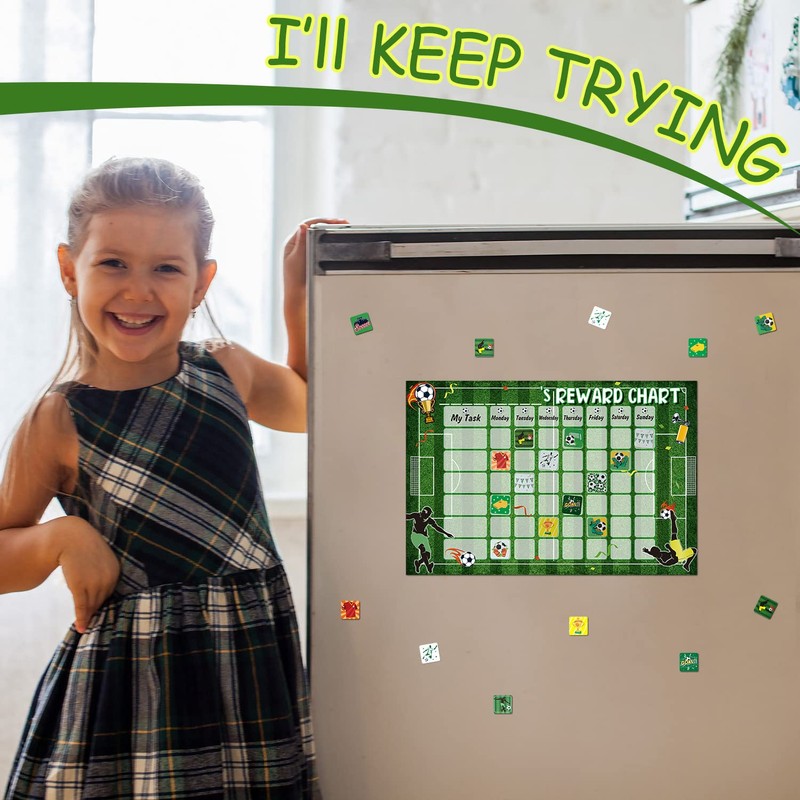 - Sufficient quantity: there are 6 pieces footballs reward charts, 6 sheets football training stickers (360 stickers in total), in this behaviour training reward chart set, altogether 12 pieces, enough amounts to develop children's habits