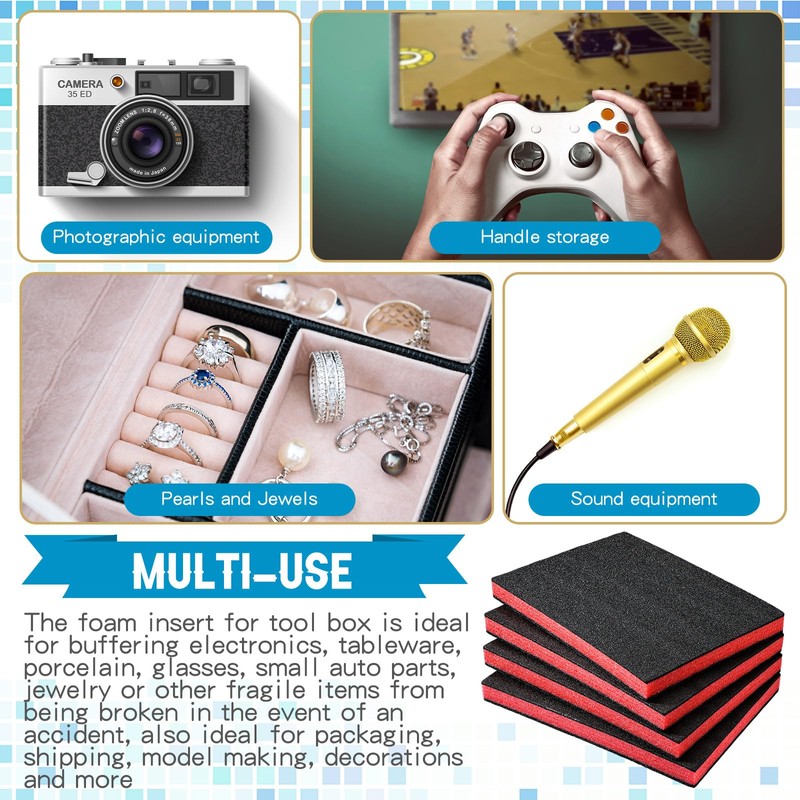 - Wide Range of Uses: the toolbox foam inserts are ideal for buffering electronics, tableware, porcelain, glasses, small auto parts, jewelry or other fragile items from being broken in the event of an accident, also ideal for packaging, shipping, model making, decorations and more