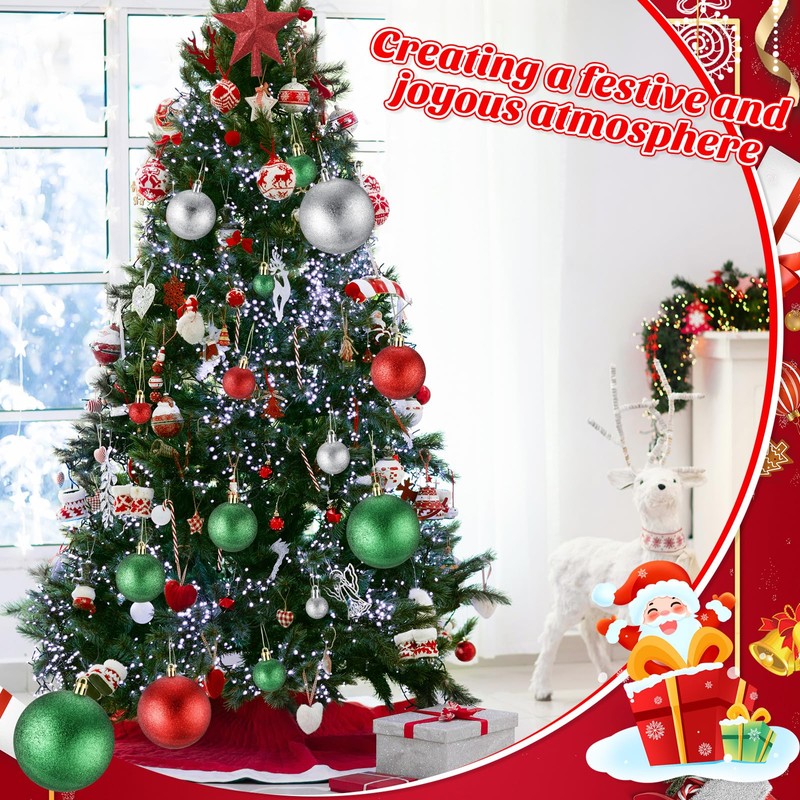 - Exquisite Glitter Finish: Our Christmas hanging balls ornaments feature a glitter finish that sparkles even more under the lights. Use these glittering ornaments to add vibrant colors to your Christmas tree and create a rich festive atmosphere
