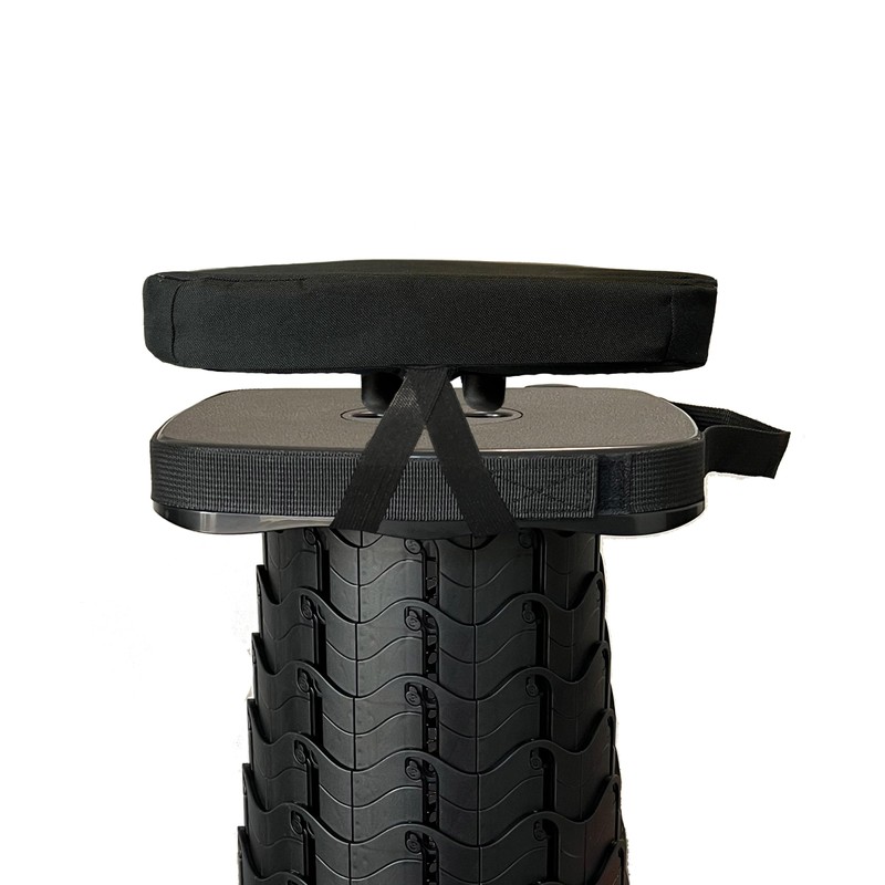 Dual Straps and Snap Knobs: This folding stool cushion comes with two built-in knobs to snap into the two holes in the telescopic stool surface, and two elastic straps to fasten on the stool so that the cushion always stay in place during the use or on the go.