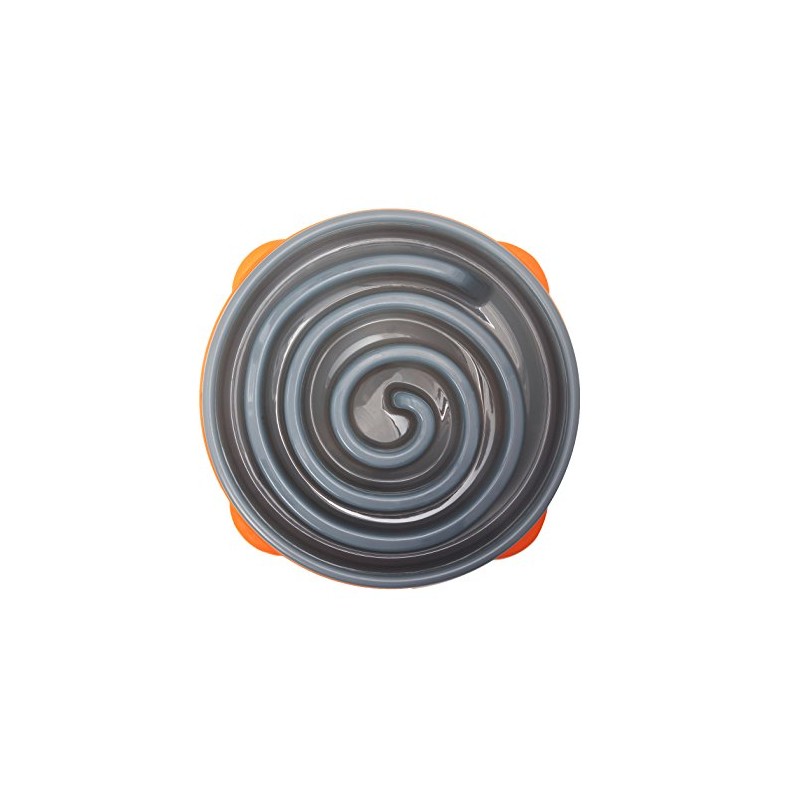 Outward Hound Interactive Slow Bowl Bloat Preventing Feeder Coral Design, Large, Grey