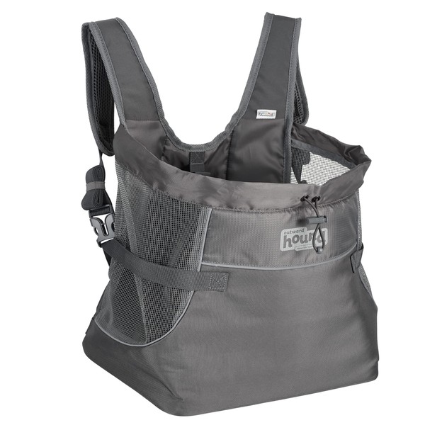 Outward Hound PupPak Dog Front Carrier, Medium, Grey – Hands-Free Hiking & Camping Pet Backpack for Small Pets up to 20 lbs, Padded Straps, Breathable Mesh, Water-Resistant, Safety Clip