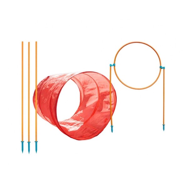 - MULTIPLE WAYS TO PLAY: The Zip & Zoom outdoor agility kit features 1 circular collapsible tunnel, 6 weave poles, and an adjustable jump with hoop.