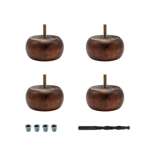 OUTWATER Architectural Products BUN32-CH 1-7/8 in. x 3-5/8 in. Stained Cherry Solid Hardwood Round Bun Foot 4 Pack with 4 Free Insert Nuts and Drill Bit