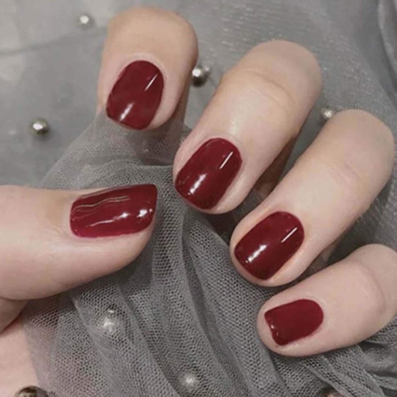 Outyua Glossy Press on Nails Red Short Fake Nails Acrylic Bridal Wedding Full Cover Flase Nail Tips Wedding for Women and Girls 24pcs