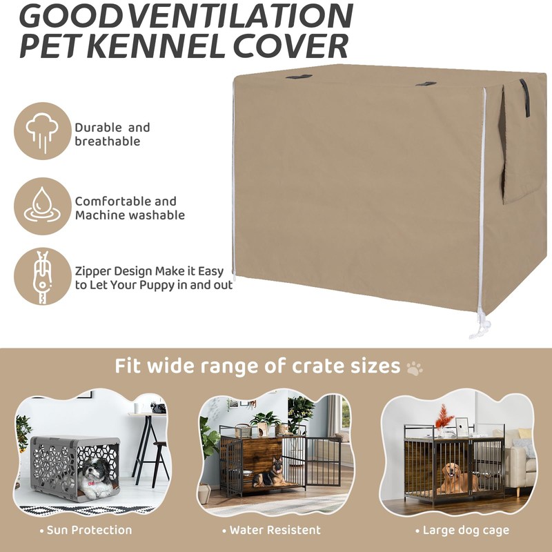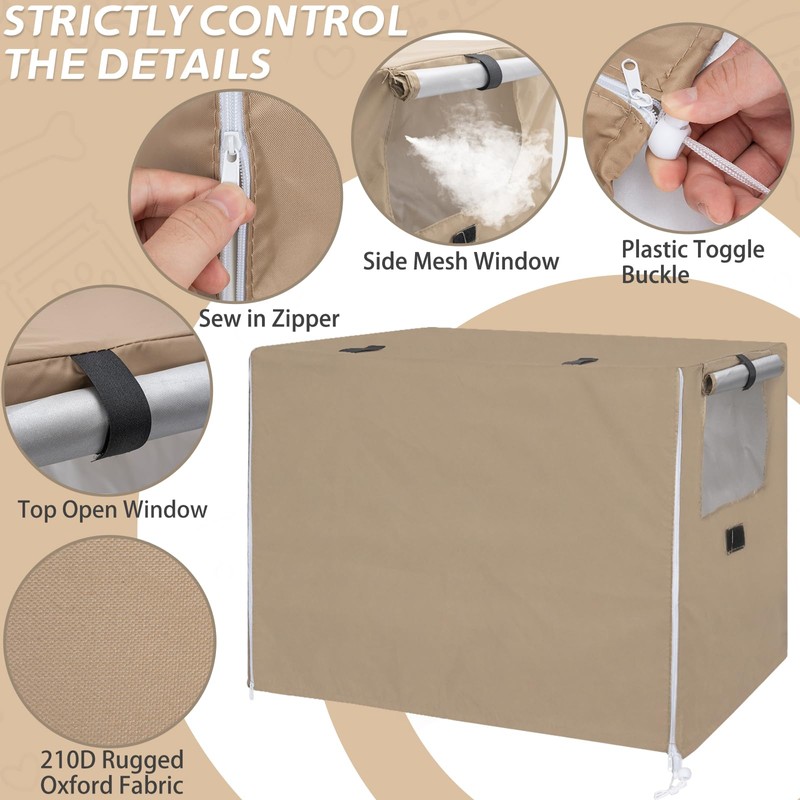 OUUTMEE Beige Dog Crate Cover, Waterproof Dog Crate Cover for 60-125cm Dog Kennel, Waterproof/Sunscreen/Light Blocking with Door and Ventilated Window