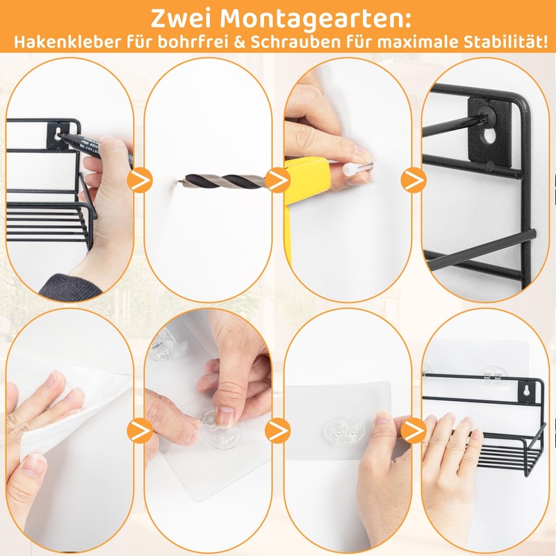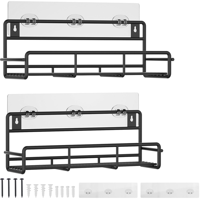 OUUTMEE Spice Rack Wall, Spice Rack, Pack of 2 Spice Rack Organiser, Kitchen Utensil Holder, Spice Rack Wall, Black