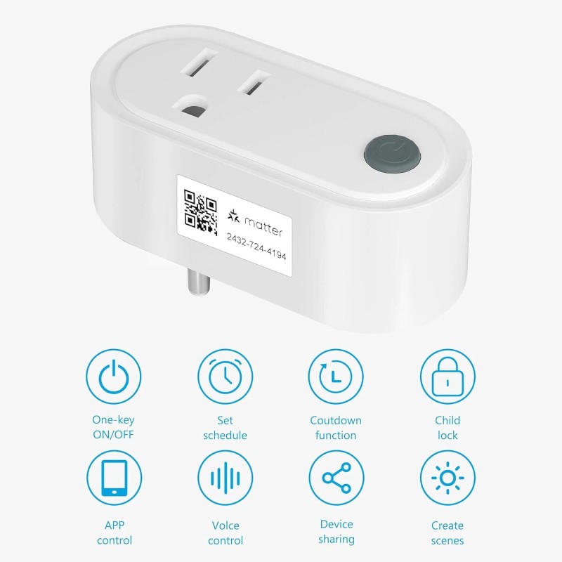 1x Matter Smart Plug fit Apple HomeKit Siri Alexa App Google 15A & Reliable Wi-Fi