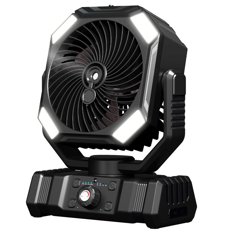 - VERSATILE DESIGN: Portable misting fan with LED lighting features and rechargeable battery for indoor and outdoor cooling comfort