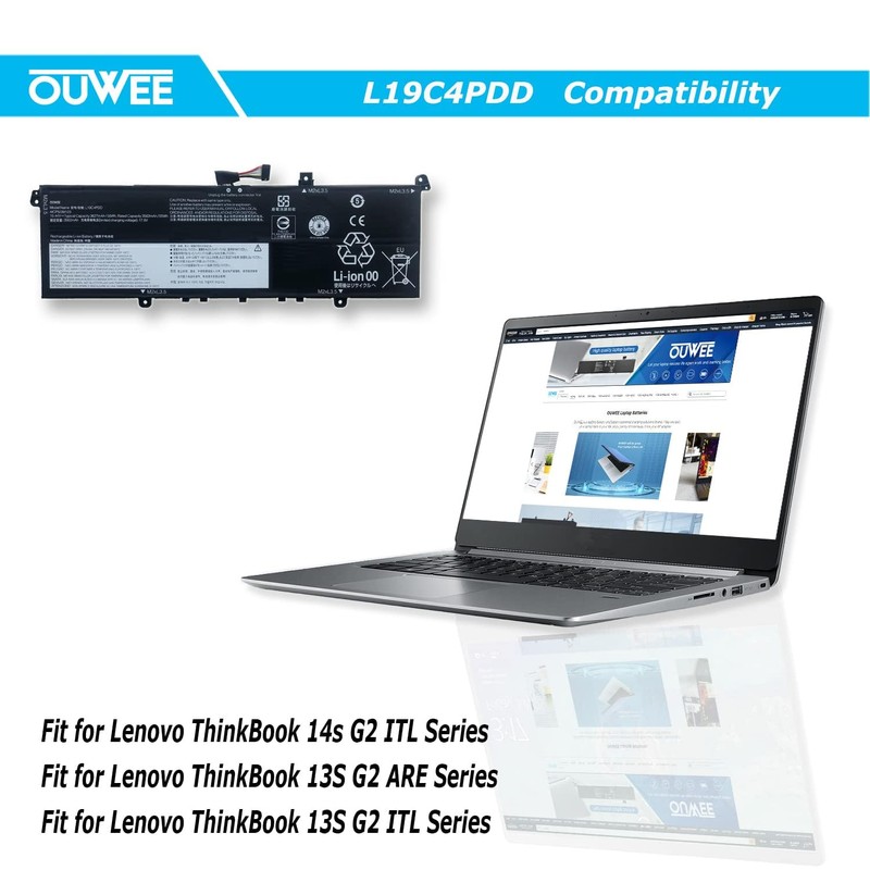 OUWEE L19C4PDD Laptop Battery Compatible with Lenovo ThinkBook 14s G2 ITL ThinkBook 13S G2 are ITL Series L19M4PDD 5B10Z37621 SB10Z37619 L19D4PDD 5B10Z37617 5B10Z37618 15.44V 55Wh 3562mAh
