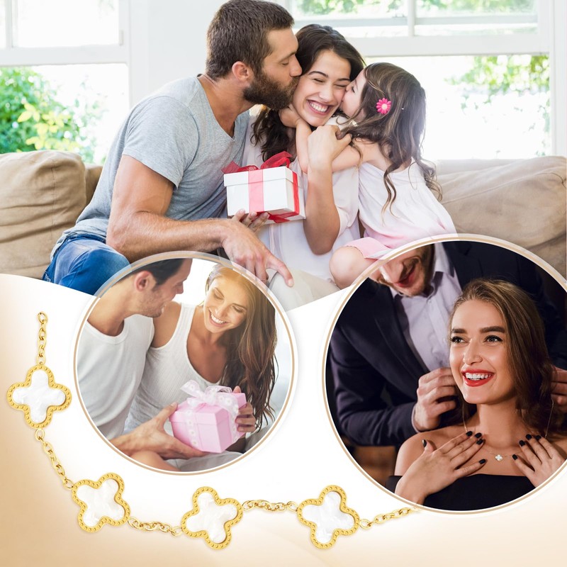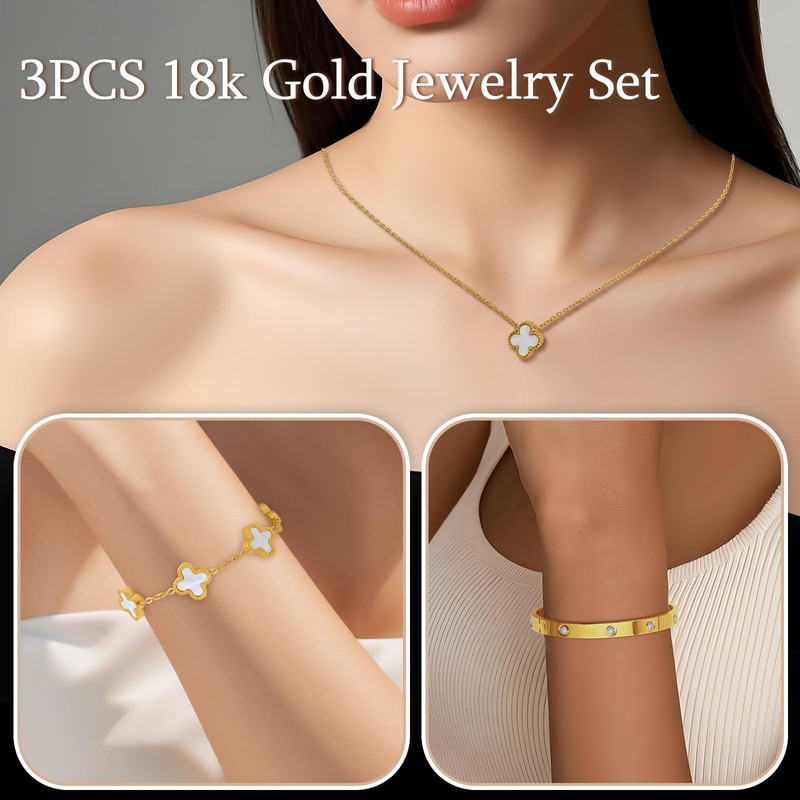 - 18 K gold jewellery set: the four-leaf clover jewellery set contains two harmoniously coordinated bracelets as well as a matching necklace and makes it easier to choose from. Perfect for beach parties, birthdays, weddings, travel, banquets, dances and many more special occasions.