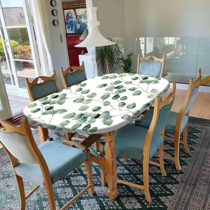 Oval Fitted Tablecloths, Spring Leaf Elasticized Table Cloth, for Indoor Holiday Family Banquet and Outdoor Patio Use, Fits Tables up to 42" W x 60" L