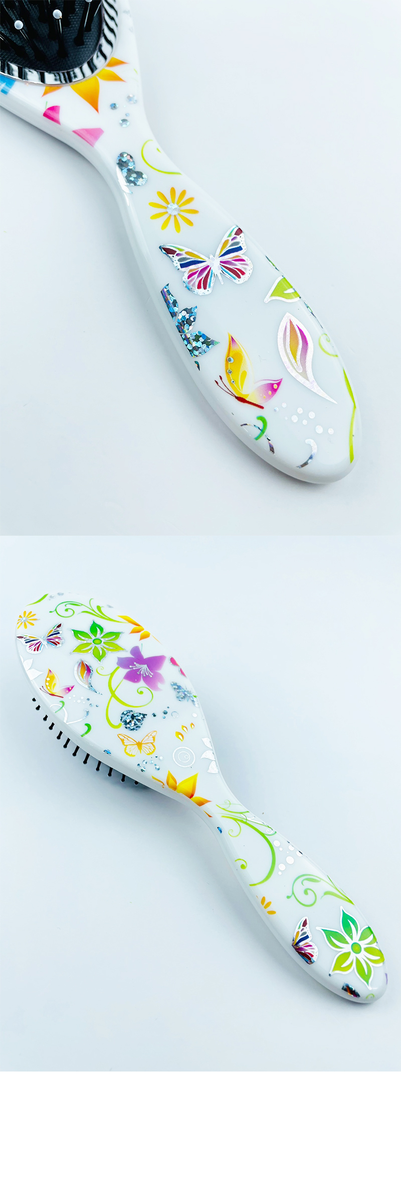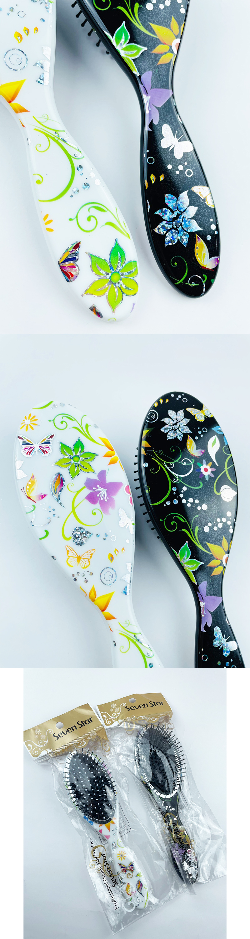 ✨ Elevate your daily hair routine with this beautifully designed oval hair brush. Its unique floral pattern adds a touch of elegance to your vanity.