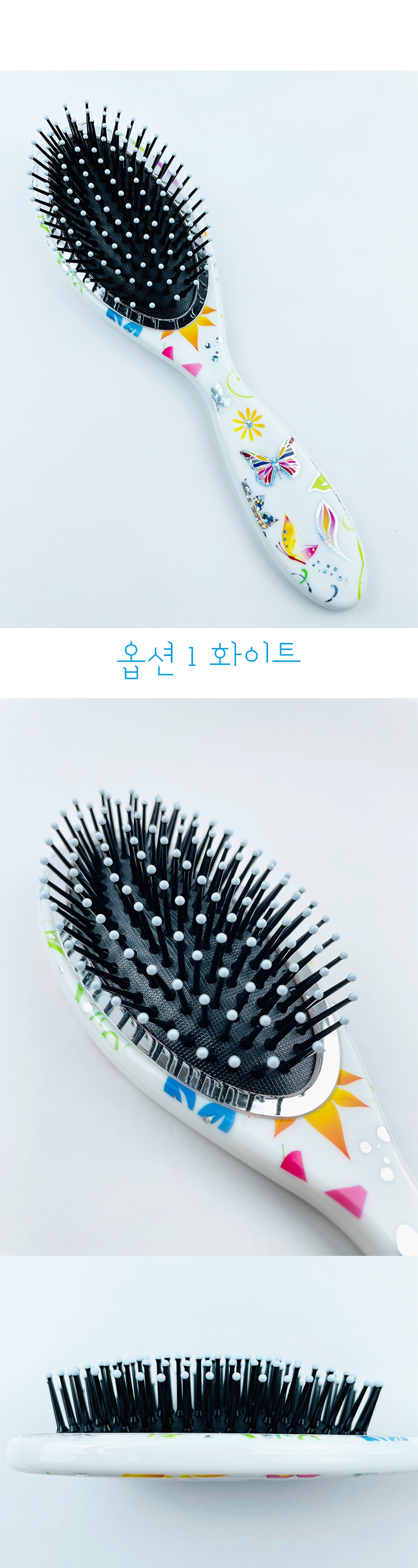 Oval Floral Seven-Star Hair Brush (Medium) 1 White