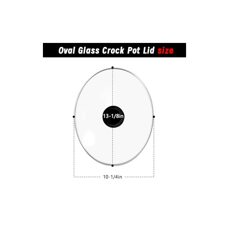 - 【Item Dimensions】Glass oval lid rival crock pot slow cooker Replacement for 7-Quart , Black Handle Measures 13-1/8"× 10-1/4" (12.99×10.23×2.36 in)