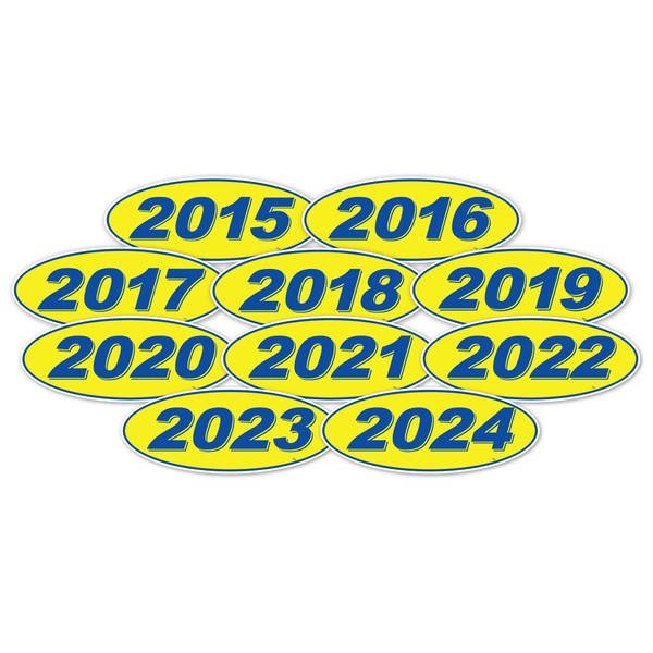 Oval Model Years Window Stickers - Multi-Year Pack (Blue on Yellow)