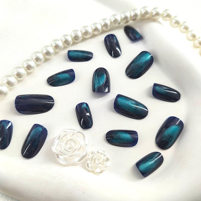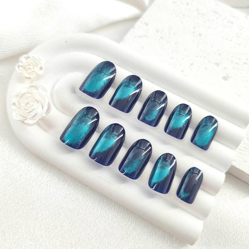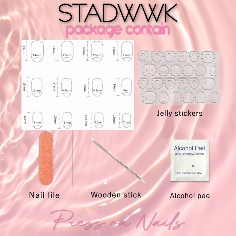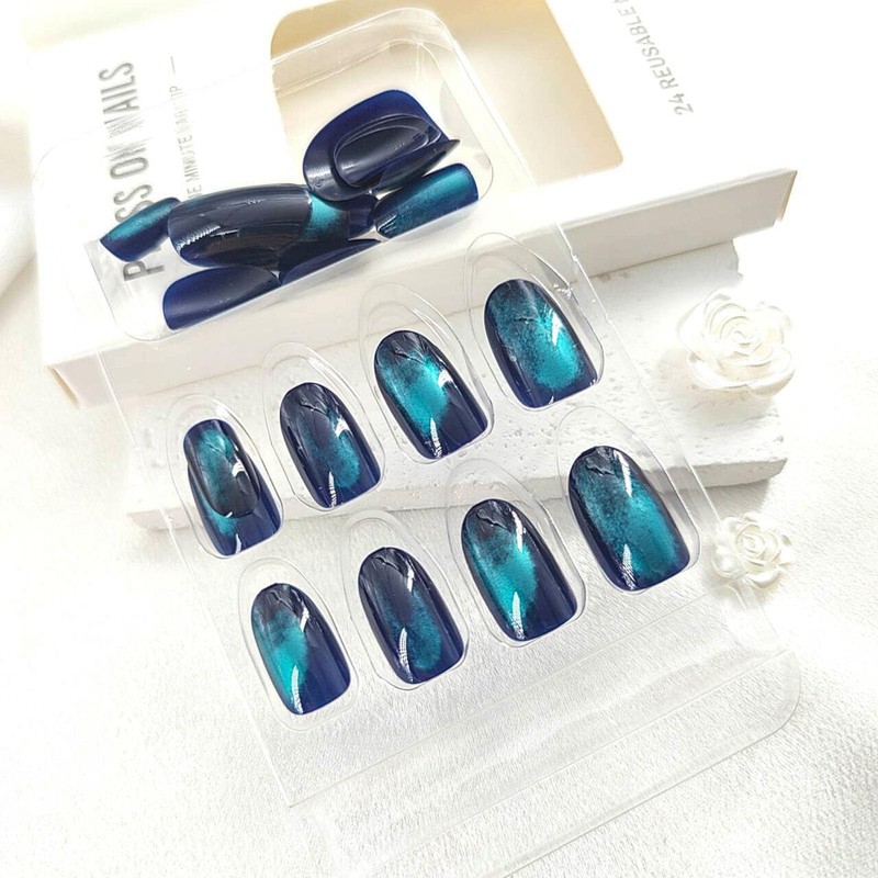- Package Included: This cat eye press on nails contains 24 pieces of 12 sizes of summer fake nails, 24 nails stickers,1 nail file, 1pcs alcohol pad, and 12 wooden stick for removing acrylic nails.