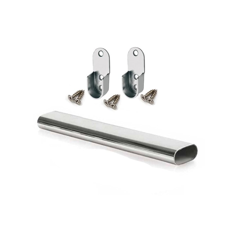Oval Rail Tube Wardrobe Chrome 500mm + End Support & Screws