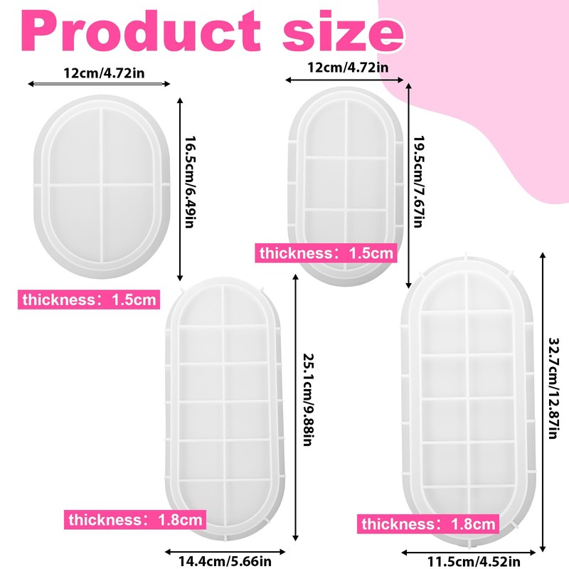 Oval Tray Mold Set of 12'', 9'', 7'', 5.7'' Large Resin Tray Mold, Oval Rolling Tray Molds, Oval Resin Tray Molds, Silicone Epoxy Resin Tray Mold for DIY Jewelry Trinket Tray
