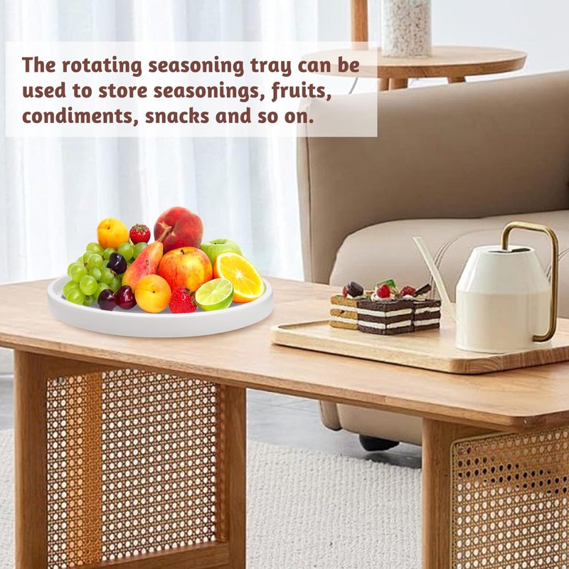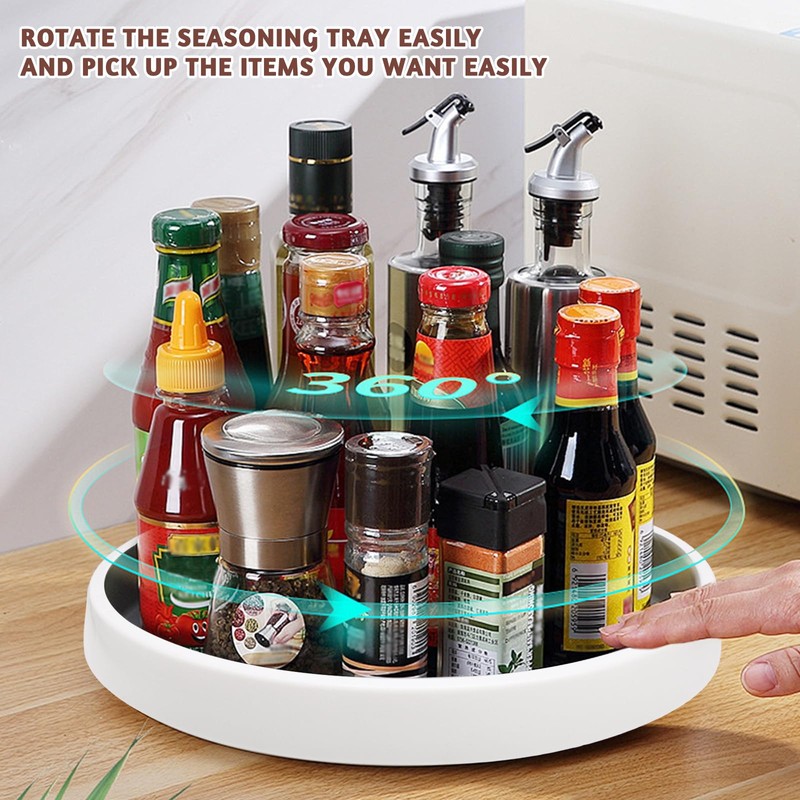 - 【Non-slip surface】: the non-slip wave point design on the surface of the turntable can help you fix the goods in the correct position to avoid collisions. The TPR tray surface keeps your bottles safe and deep when you turn the Lazy Susan turntable organiser. Anti-slip sticks at the bottom make this spice tray not easy to move. The outer edge prevents items from falling off.