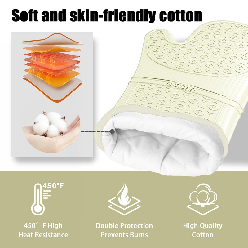 - 【Cleaning Champion】: If you always dread the greasy, sauce-soaked aftermath of baking. But these mitts? They just laugh in the face of culinary chaos. A quick wipe with a damp cloth or rinse with a little soapy water and any food just rinses right off. they're good as new, no stains, no lingering aromas. They're basically the dishwasher of the oven mitt world.