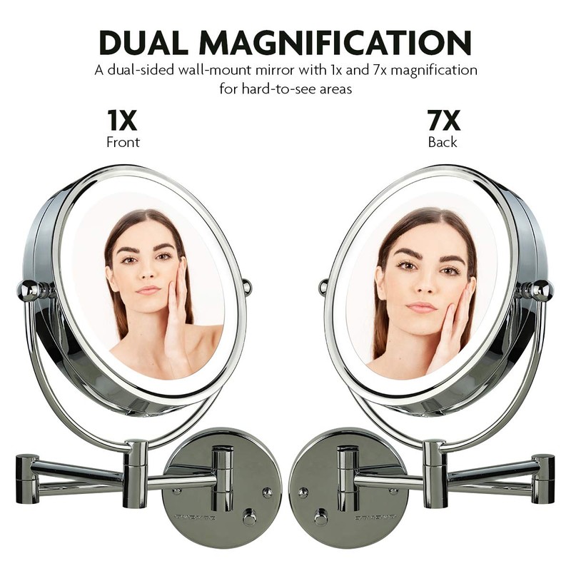 - 8.5'' Viewing Space, Dual-Sided & 7x Magnifying -This Two Sided 360° swivel design luxury mirror features 1x & 7x magnifications. 1x (full face view) and 7x (to see every detail up close)