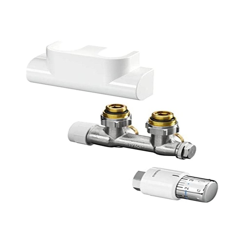 Oventrop Bathroom Radiator Accessory Set (Including 'Uni SH' Thermostatic Head and 'Multiblock T' Corner Connection Fitting) White