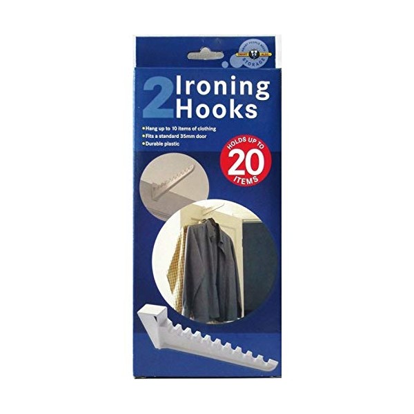 Over Door Plastic Ironing Hooks - Holds Up to 10 Hangers, Pack of 2