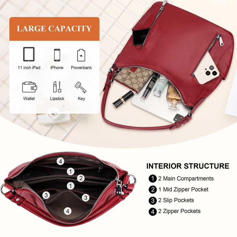 Over Earth Genuine Leather Purses and Handbags for Women Hobo Shoulder Bag Ladies Crossbody Bags Medium(O150E UG Wine Red)