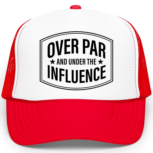 Over Par and Under The Influence Golf Trucker Hat Foam Front Classic 5 Panel Mesh Snapback White/Red Trucker Hat