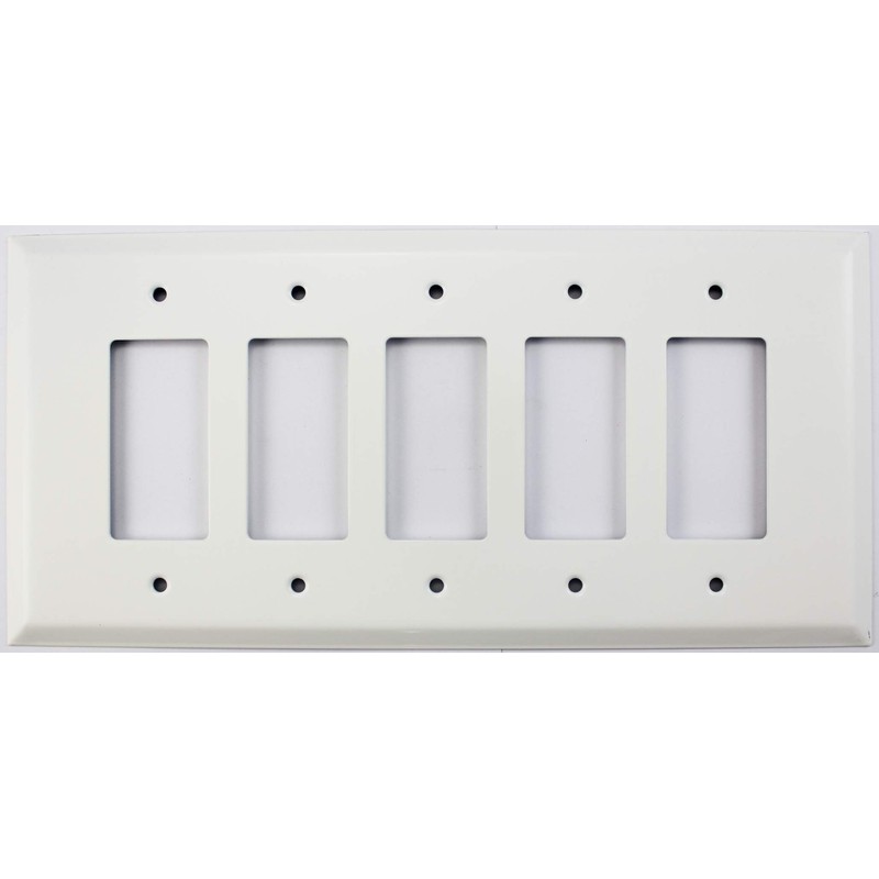 Over Sized Jumbo Smooth White 5 Gang GFCI/Rocker Opening Wall Plate