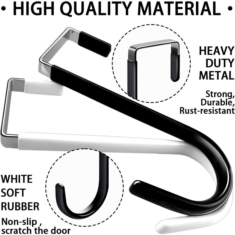 - High-Quality Material: Made from premium metal with a soft rubber coating, these over the door hooks protect both your doors and garments from damage, allowing quiet and smooth door closure.