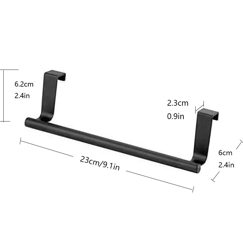Over The Door Towel Rail Towel Holder for Cupboard Drawer Cabinet Kitchen and Bathroom Towel Rail (1, black)