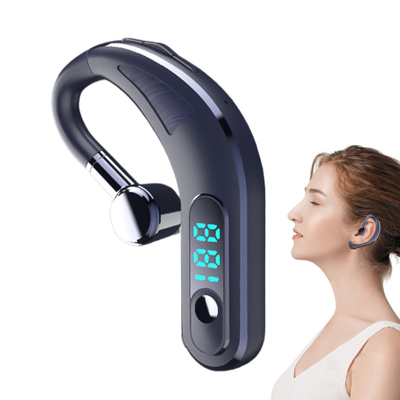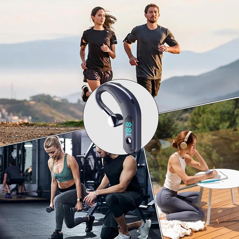 Over The Ear Earbuds, Noise Canceling Headphones Wireless Earphones, Sweatproof Headset with Earhooks & LED Display, Deep Bass Long Playtime for Sports