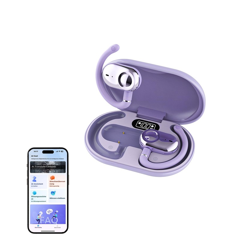 - Stable to Wear: The ergonomic design of the body optimizes the weight distribution of the open ear OWS earbuds, so you don't have to worry about the wireless earbuds falling while shaking and moving. These wireless earbuds Bluetooth are lightweight. The shape of the AI translation earbuds is designed to fit the ear, which is comfortable and painless