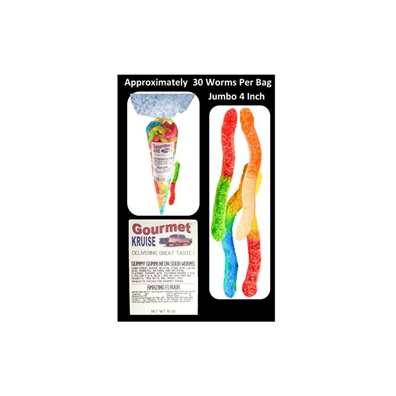 Over The Hill Happy Birthday Series Bright Sour Worms (NET WT 31 OZ) (Pack of 3) In 1 Box Gourmet Kruise Signature Gift Bags