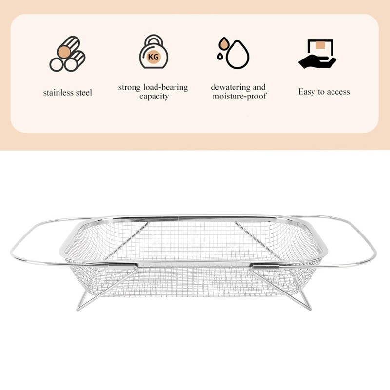 - [Premium Stainless Steel] Made of stainless steel, this over the sink colander is durable, anticorrosive, and easy to clean. It will last you a lifetime of use!