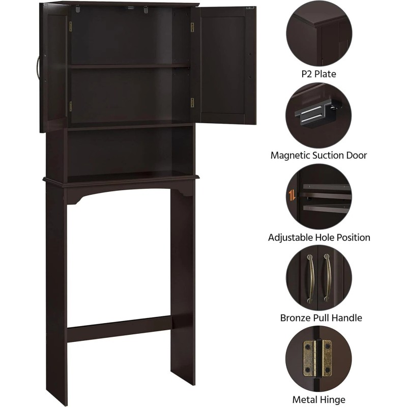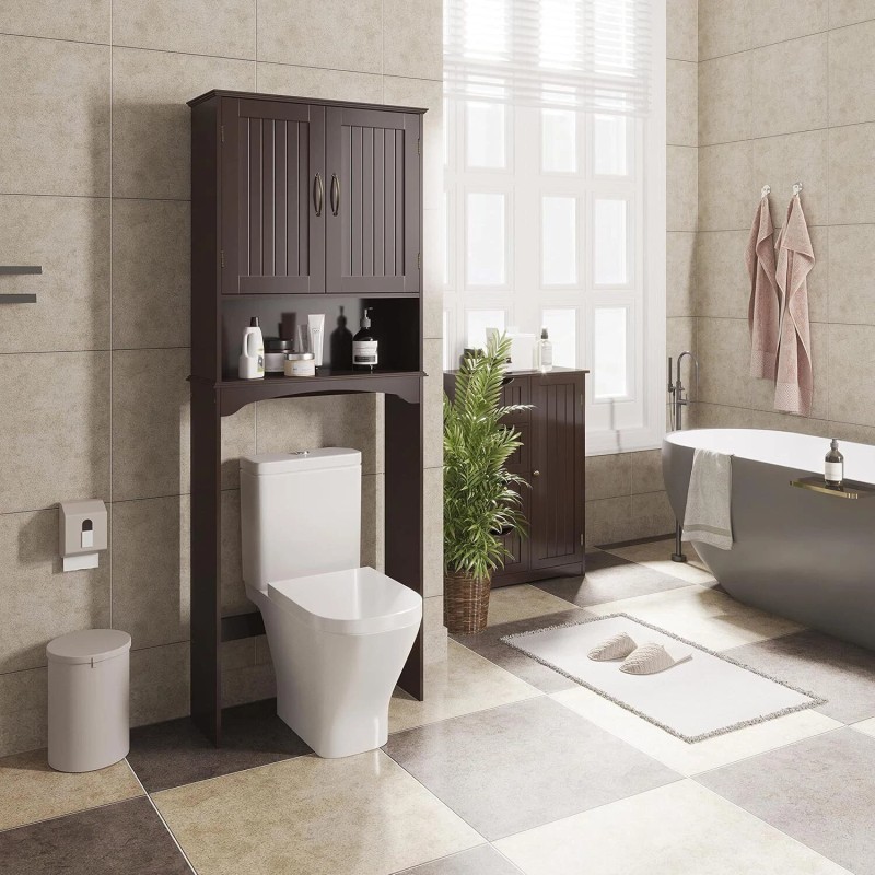 Over The Toilet Storage Cabinet 2 Door Adjustable Shelf Freestanding Toilet Rack
