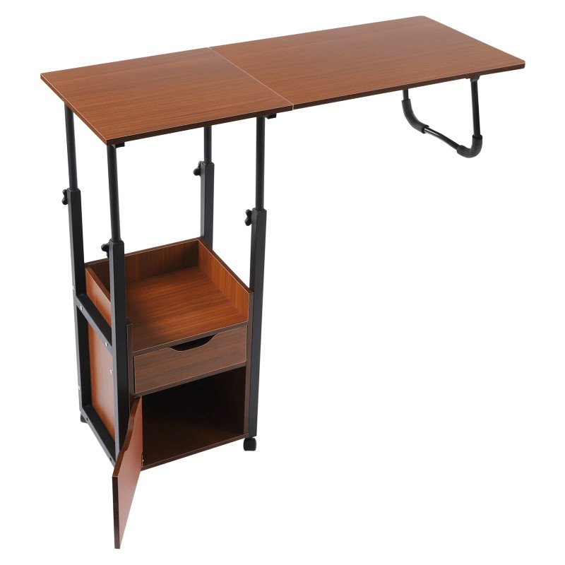 Overbed Laptop Table Desk Bed Table Folding Overbed Writing Table & Wheel Drawer