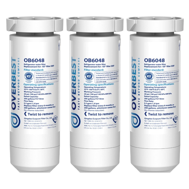 - [Overview] We started Overbest to disrupt the traditional water filtration industry with easy-to-use and affordable replacement water filters. As a young startup, we use the latest filtration technologies to provide efficient clean water solutions for you in your home. The Overbest replacement refrigerator filter for GE XWF is NSF 42 and NSF 372 certified and uses only premium materials that have passed rigorous in-house lab testing to provide you with higher quality drinking water.