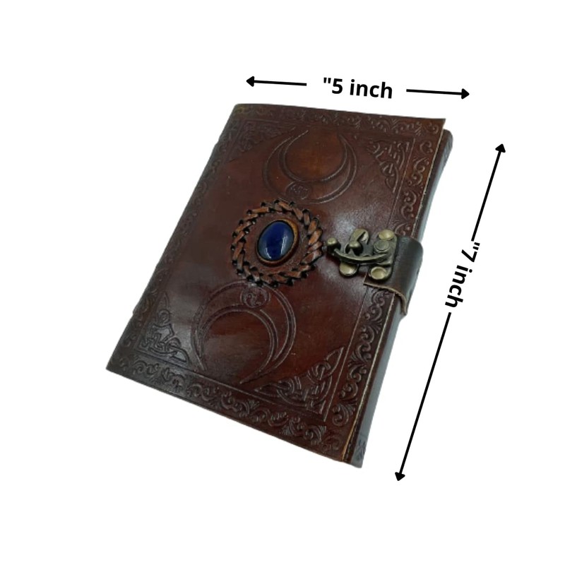 BROWN MOON STONE EMBOSSED LEATHER JOURNAL OF THE HIGHEST QUALITY NOTEBOOK & SKETCHBOOK Entirely handcrafted by artisans, each leather bound journal is a work of art. We use a thicker, higher grade leather combined with incredible craftsmanship to create a journal that is soft and supple in the hand with that fabulous, intense leather scent. Our Brown Moon Stone leather is prepared in the Vintage style and takes on its own distressed character with use. The natural Brown Deckle colour variations make each journal unique. The Vintage Journal is made from Deckle Paper which makes you feel like you are writing in an old relic. The size of pages are approximately A6 size. It will hold any ink without any bleed through. The Leather strap Journal can be used as a Sketchbook, Book of Shadows, Grimoire, Poetry journal, Food journal, spell book, memory journal and many more. It transports you to a world all your own. VINTAGE KEY TO MAKE IT A TIMELESS MASTERPIECE Old Fashioned Paper combined with a vintage key along with the beauty of distressed leather, handmade by Artisans creates a masterpiece that you can cherish over decades. STURDY BINDING AND LEATHER WRAPAROUND Sturdy hand stitched binding to make sure that no paper comes out loose from your vintage notebook. The leather wraparound keeps the papers of the journal safe and secure. OVERDOSE Genuine leather will age with character - or simply rub away your markings if you choose. A lifelong companion on your journeys Brown Moon Stone Journal with key Journal For Men And Women