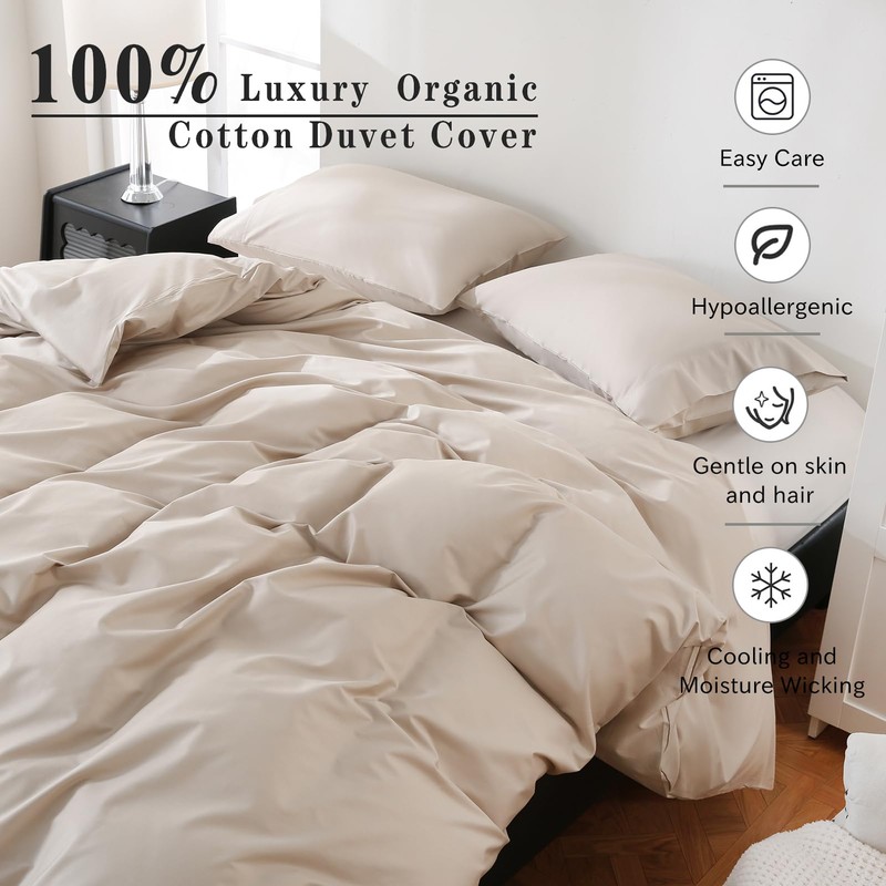 - SOFT BREATHABLE:Our 100% Organic Cotton Duvet Cover Set Features Superior Moisture Absorption,Ensuring That You Stay Comfortable And Smooth All Year Round.It Is Breathable, Keep You Cool In The Summer And Dry And Warm In The Winter; Durable And Soft, High Density Fabric Keep Duvet Cover's Shape And Softness After Every Wash