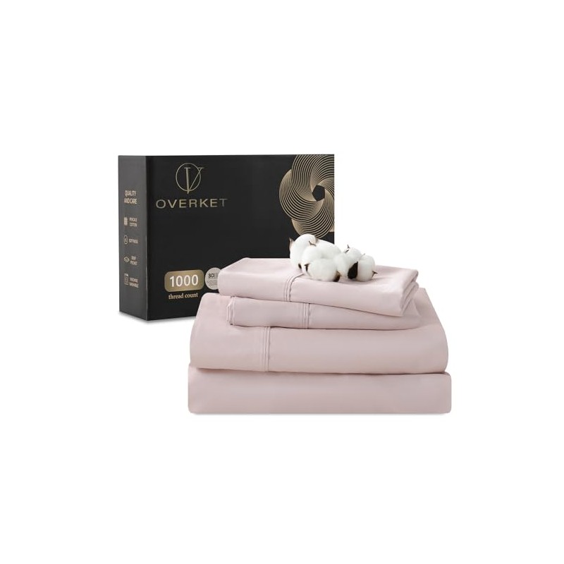 Overket Egyptian Cotton Sheets Full Size 1000 Thread Count Sateen Weave Soft Breathable 16-Inch Deep Pocket 4PCS(Full,Dusty Pink)
