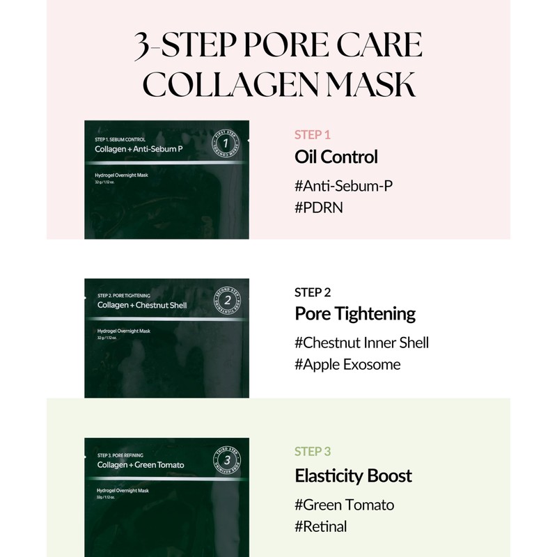 Overnight Collagen Face Mask 3 Step Pore Minimizer Hydrogel Sheet&Boost Serum-Oil Control PDRN-Tightening Exosome-Elasticity Retinal - #1 (3 Pack)