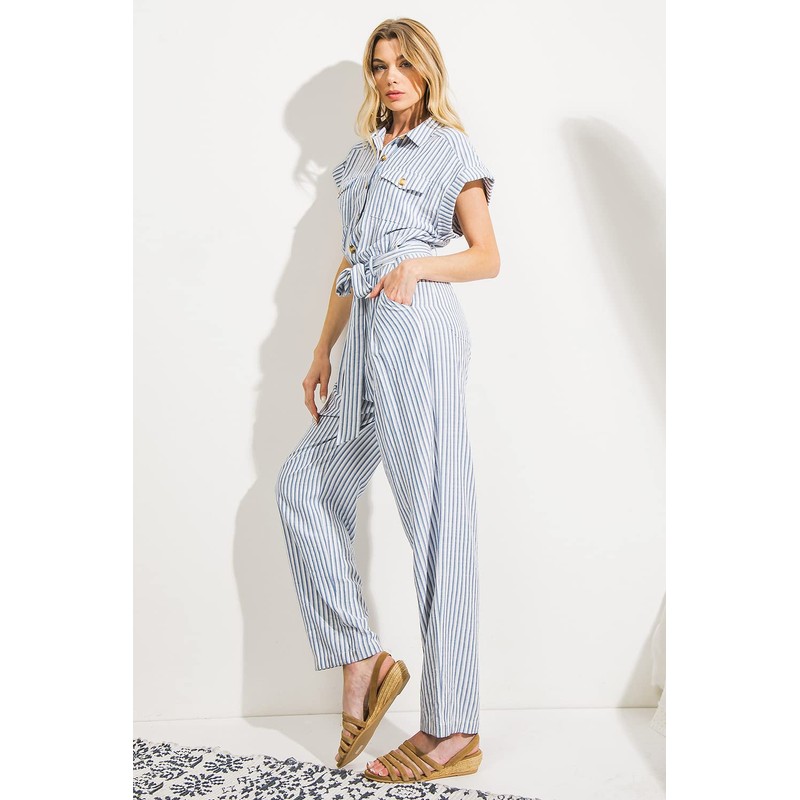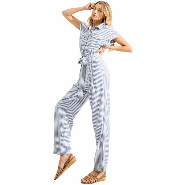- Mono náutico con cuello estructurado, cierre de botón y mangas cortas con puños. Completo con bolsillos de parche en el pecho, bolsillos inclinados en los lados y la espalda y un cinturón alrededor de la cintura. Silueta de pierna recta para un aspecto pulido.