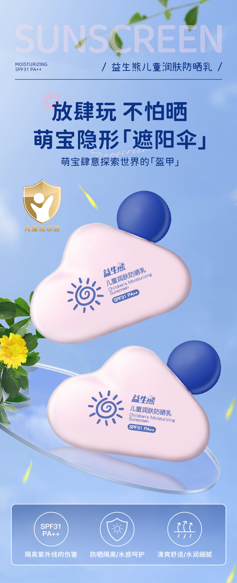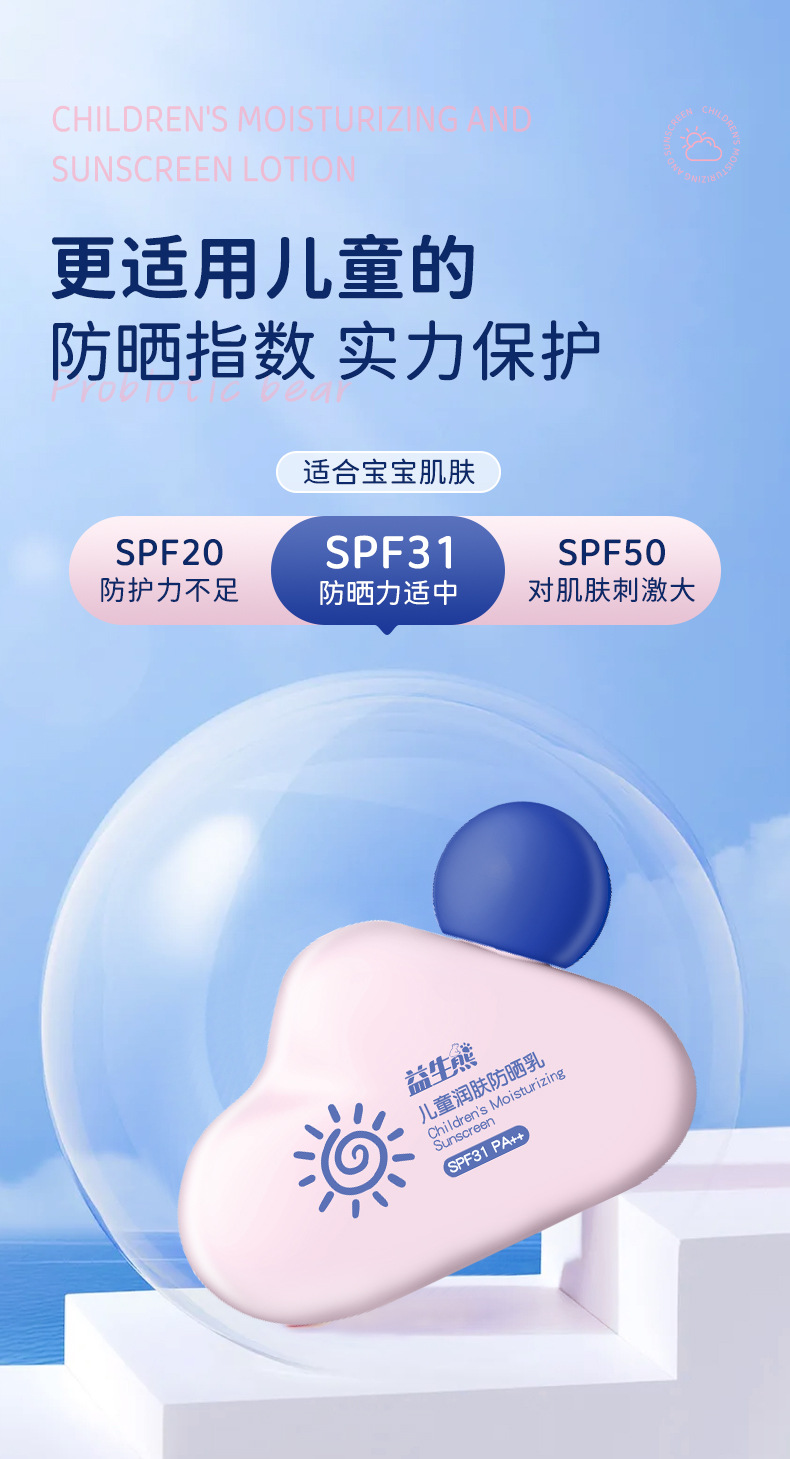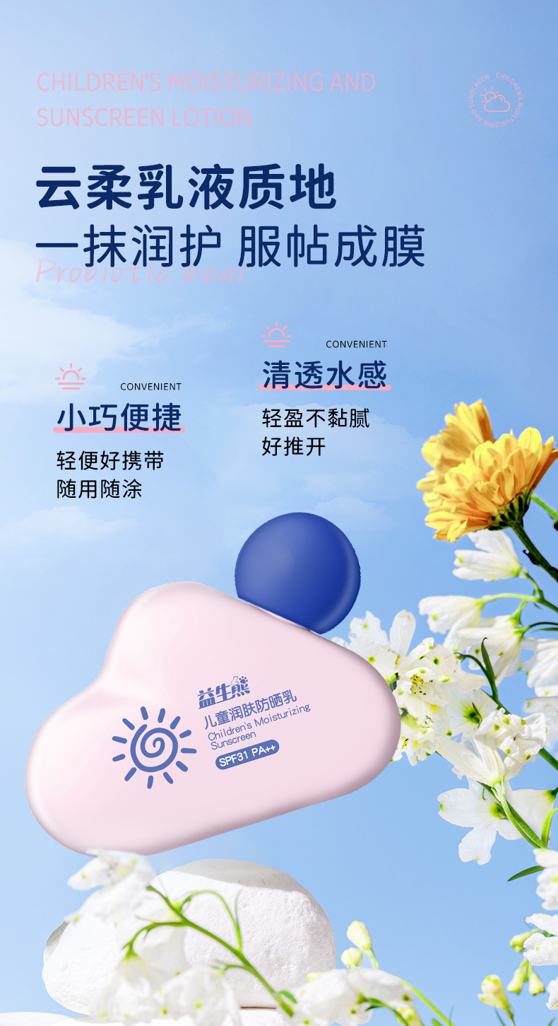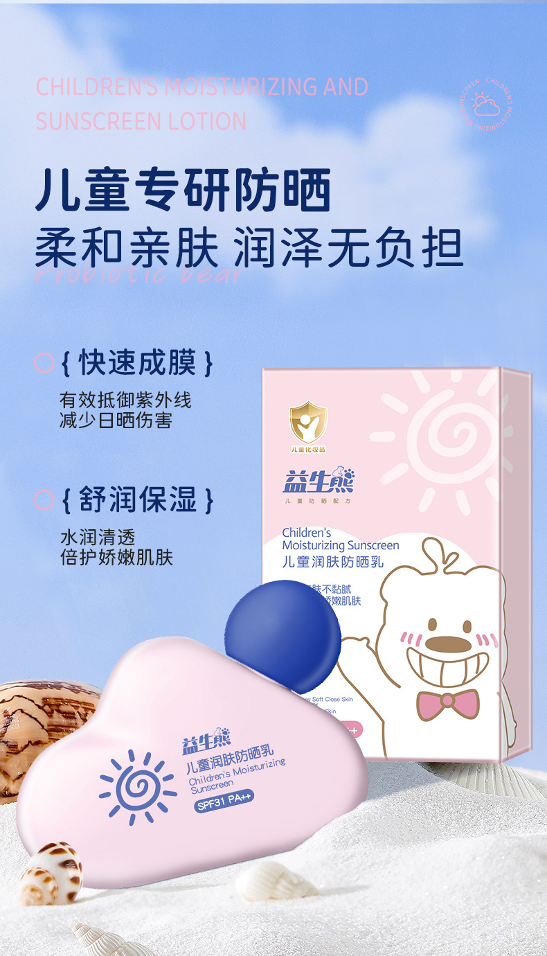 [Overseas] Sunscreen Recommendation: Probiotic Bear Children's Moisturizing Sunscreen for Babies, UV Moisturizing Physical, 50g/Style 1 10ea
